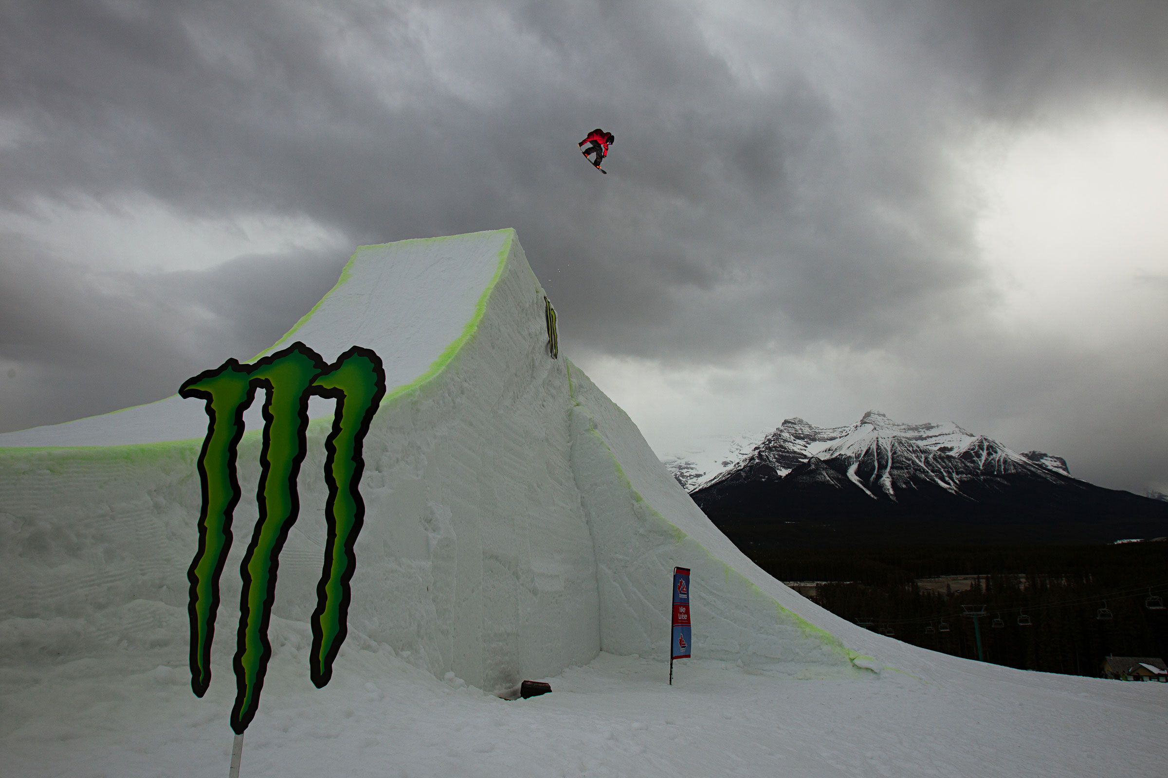 Day one of Ruckus in the Rockies 3 went off on Friday with athletes sending huge airs off the giant size hip. Monster Energy athlete and noted hip slayer Charles Reid was the best rider of the day and wowed the crowed with his massive melon to fakie.