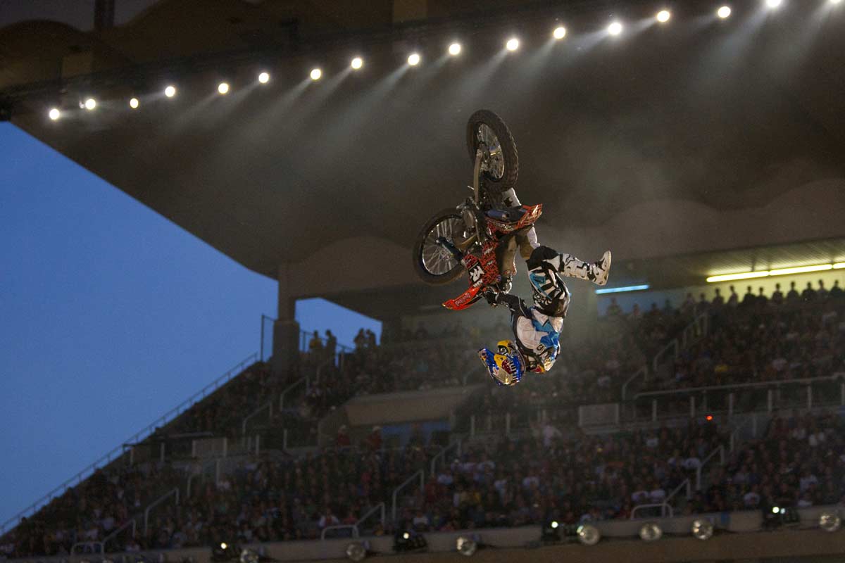 Red Bull X-Fighters are invitation tournaments where the best FMX riders in the world come face to face. The competitions’ particular flair comes on the one hand from the relatively restricted space in the bullfighting arenas (and therefore the close proximity of the crowd to the sporting spectacle) and, on the other hand, from the replication of a number of rituals from a typical “corrida”: for example, the riders are greeted by drum rolls and trumpet fanfares, and the public audience may honour the riders’ performances by waving white rags